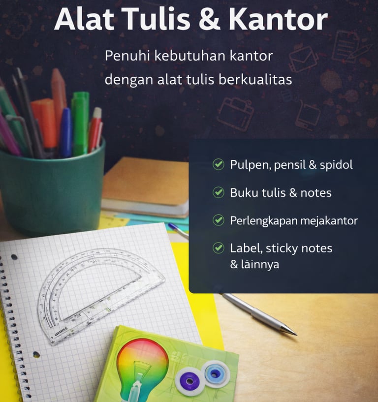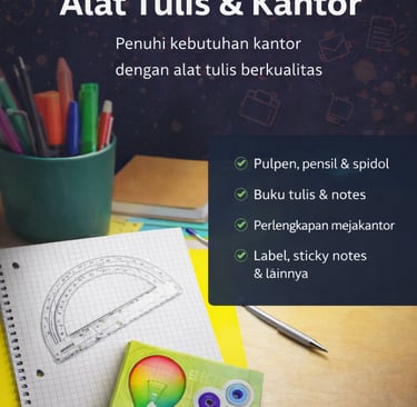 Menyediakan berbagai kebutuhan alat tulis kantor dan perlengkapan printer berkualitas dengan harga terbaik. Cocok untuk kebutuhan kantor, sekolah, maupun bisnis.